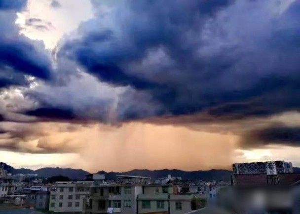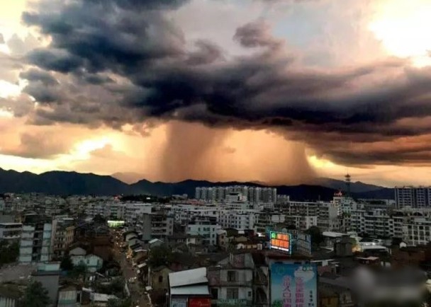 7月21日傍晚,福建连城的天空惊现一个巨型圆柱,将天空与地面相连接,犹如天河之水流向人间,场面极度震撼。
