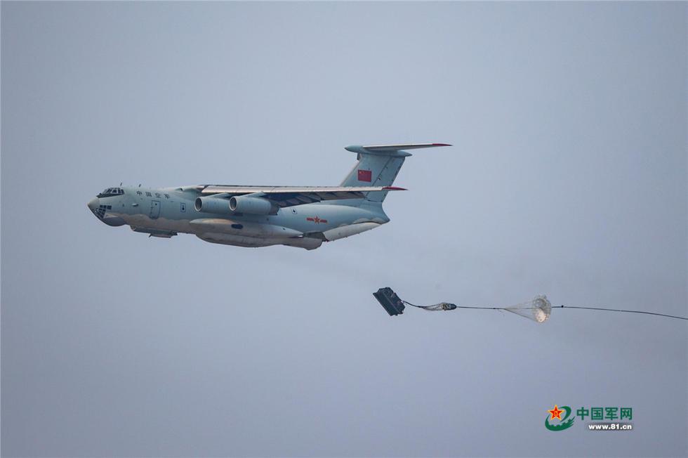 中国空军伊尔-76飞机进行空投作业。杨盼摄影