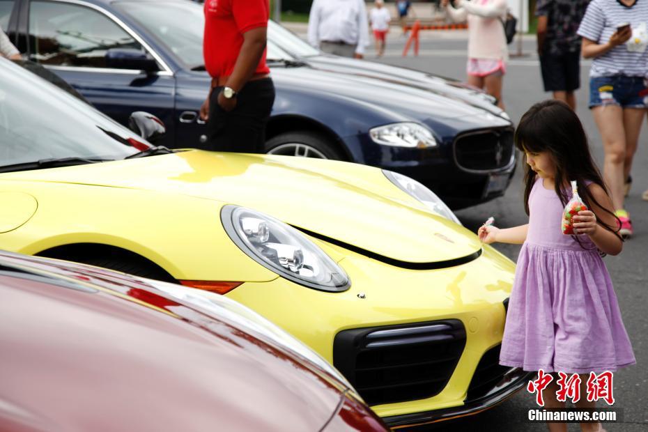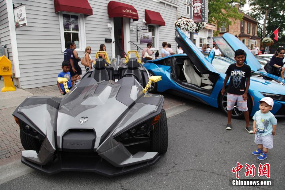 当地时间7月23日,加拿大大多伦多地区万锦市於人村(Unionville)举行一年一度的名车展。兰博基尼、阿斯顿·马丁、迈凯伦、保时捷、法拉利等近百辆超级跑车、豪车及老爷车,齐聚於人村街区,吸引大批民众前往欣赏。中新社记者 余瑞冬 摄
