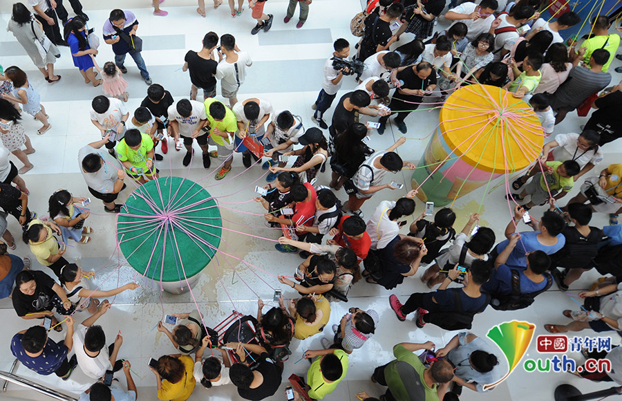 百余民众围着巨型饮料杯,场面壮观。中国青年网 高明 摄
