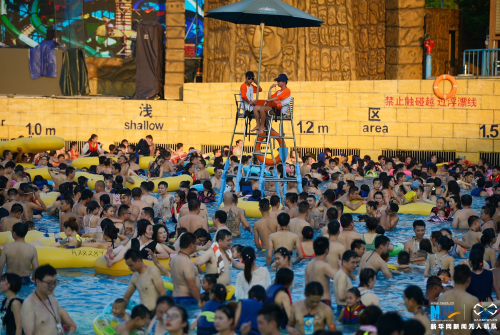武汉持续高温 水上乐园“下饺子”