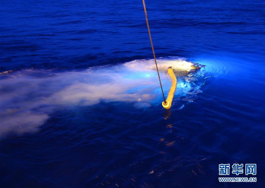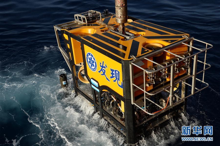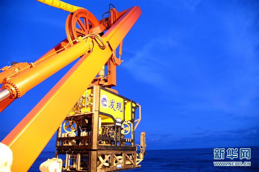 7月24日,“发现”号遥控无人潜水器入水。新华社记者张旭东摄