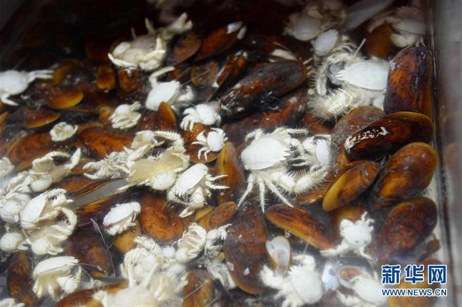 “发现”号采集到的贻贝(7月25日摄)。7月25日,我国新一代远洋综合科考船“科学”号搭载的“发现”号遥控无人潜水器从南海一冷泉区带回大量生物样品,包括100多只潜铠虾、贻贝和阿尔文虾等生物样品,并拍摄了大量海底高清视频资料。新华社记者 张旭东 摄 图片来源:新华网