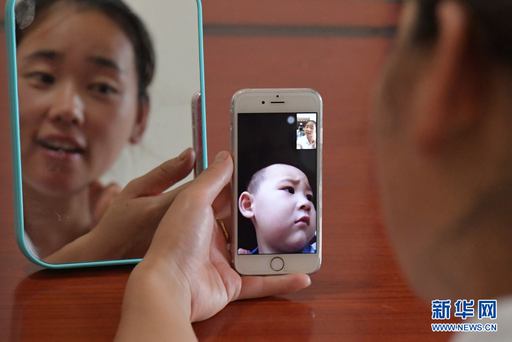7月13日,张菊和留在婆家的儿子视频。由于多次失言回去看孩子,儿子赌气,将小脸扭向一边。