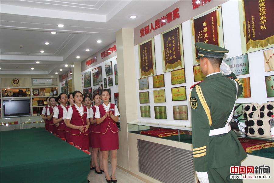 7月25日,北京客运段联合国旗护卫队开展了“迎八一爱国主义”活动,图为乘务人员参观荣誉室。中国网记者 尚阳 摄
