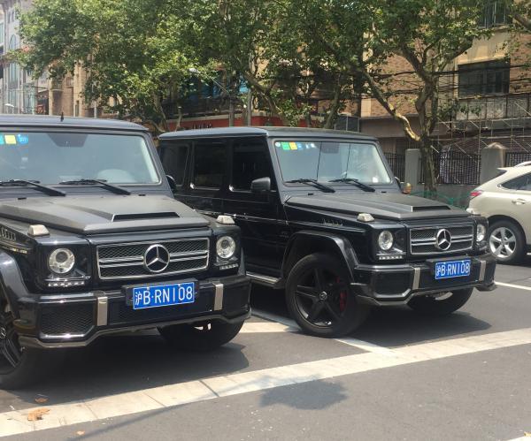 7月26日中午时分,上海陕西南路南昌路路口,两辆黑色一模一样的奔驰车并排停在一起,连车牌号也完全一致,俨然是一对“孪生兄弟”。