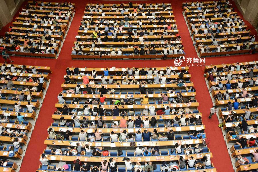 近两千名考研生在会堂中休息,场面别样的壮观。