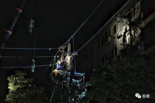 7月27日上午,一名电力维修人员正在进行现场作业。他已经两天一夜未合眼,眼圈都是红的。