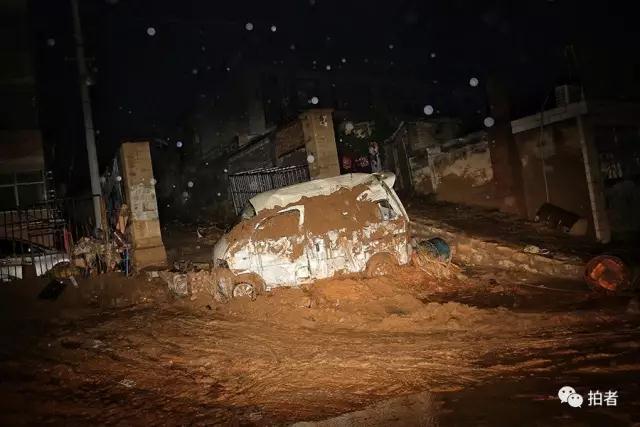 7月27日凌晨,榆林市绥德县,被洪水冲毁的车辆。