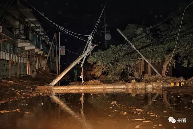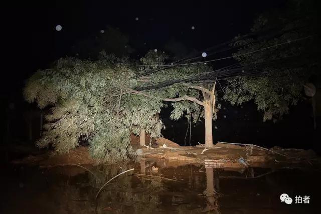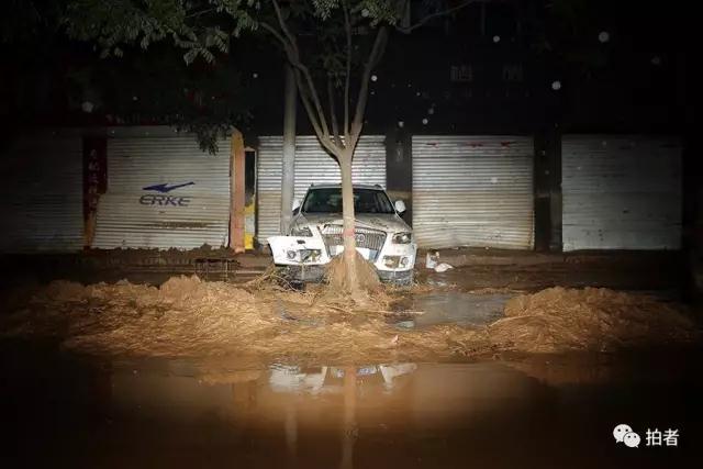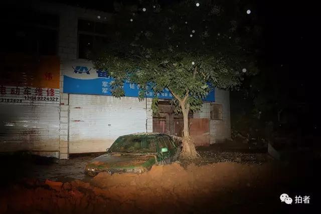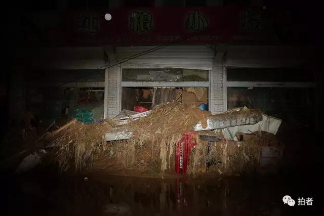 7月27日凌晨,榆林市绥德县,住宅、沿街商铺一片狼藉,街道上几乎看不见人。