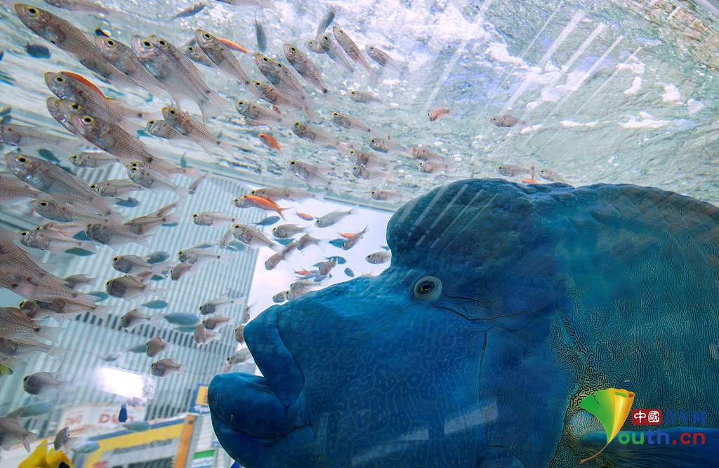 又丑又萌 巨型蓝色苏眉鱼吸引大批民众围观