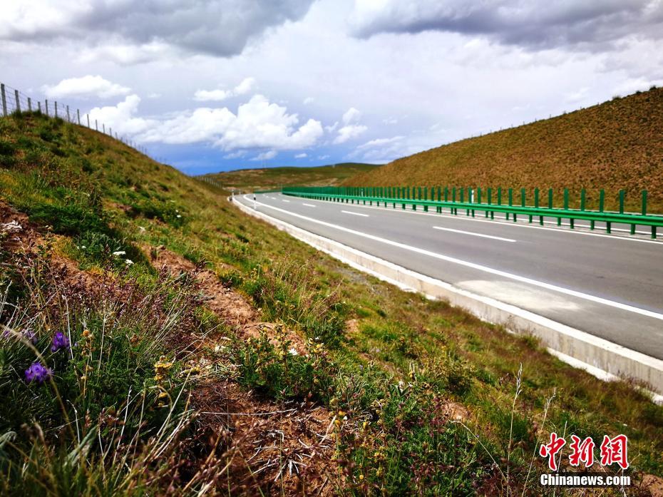 8月1日,历经七年建设,在青藏高原多年冻土区建设的首条高速公路——青海共玉高速公路宣告建成通车。共玉高速公路起自青海省海南藏族自治州共和县恰卜恰镇,途经果洛藏族自治州,终点止于该省玉树藏族自治州州府结古镇(新寨村)。共玉高速全线穿越三江源地区,沿线生态系统多样,新建成的高速公路和大自然构成了一幅绝美的风景画。图为青海共玉高速公路。张添福摄