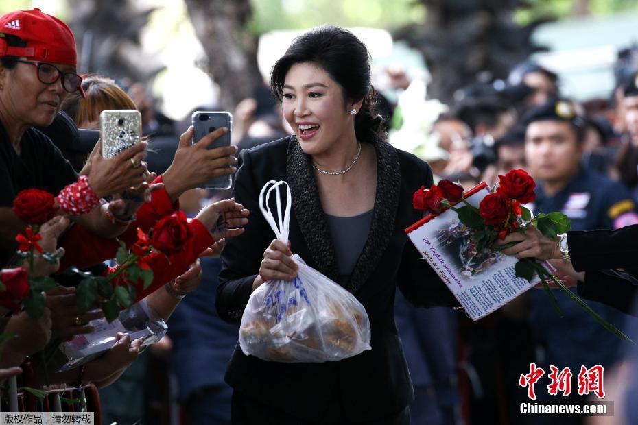 为保障安全秩序,警方当天部署了约400名警察在法院周边,并设置了安全栅栏。英拉在离开法院前对媒体简短表示,大米收购政策是自己做过最骄傲的事,这一政策使农民受益。虽然现在面临各种指控,需要不停上法庭,但自己并不后悔,相信法庭会有一个公正的裁决。图为英拉抵达时收到民众热情欢迎。