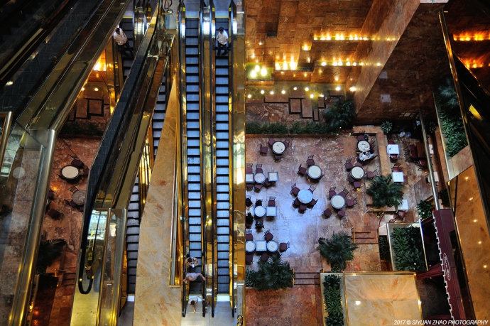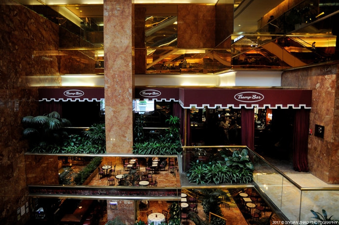 图为1993年,特朗普对这里进行了重新装修,内饰贴满了金箔纸,地面铺设了罕见的石刻大理石。