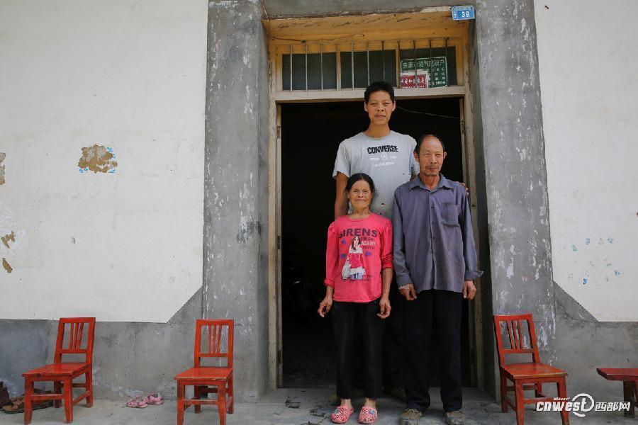 任能兵的父亲耳朵只有一点点听力,身高1米67,母亲是聋哑人,身高1米47,父母均为"一级残疾",任能兵自己因长脑瘤得了巨人症,是"三级残疾",一家三个残疾人,让这个家陷入极度贫困。任能兵希望能到西安等大医院去看病,但没钱只能想想。记者魏永贤 图片来源:西部网