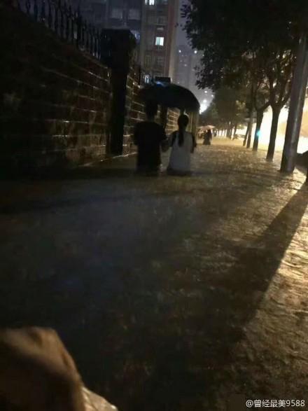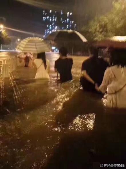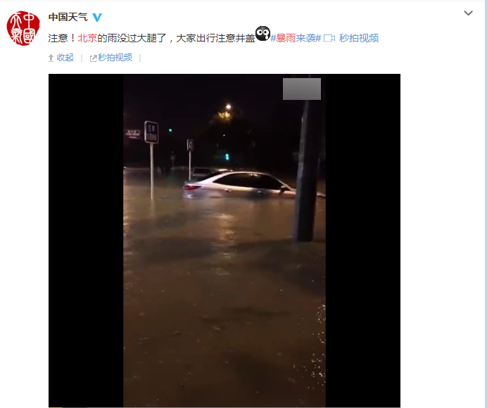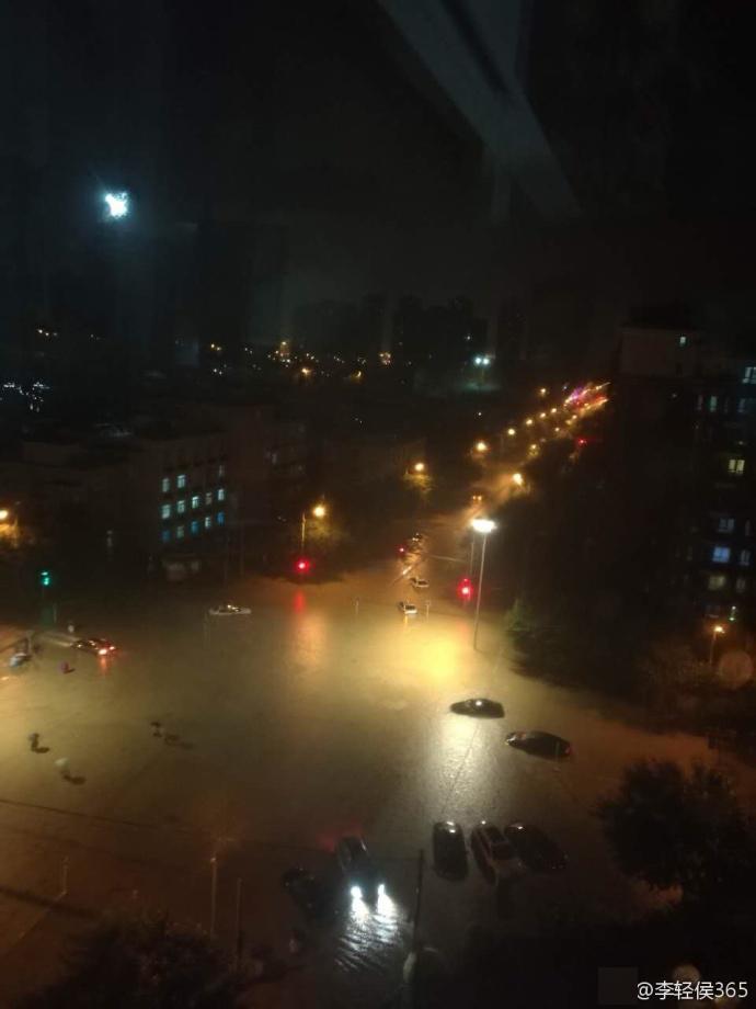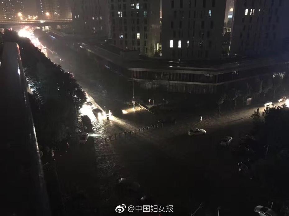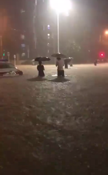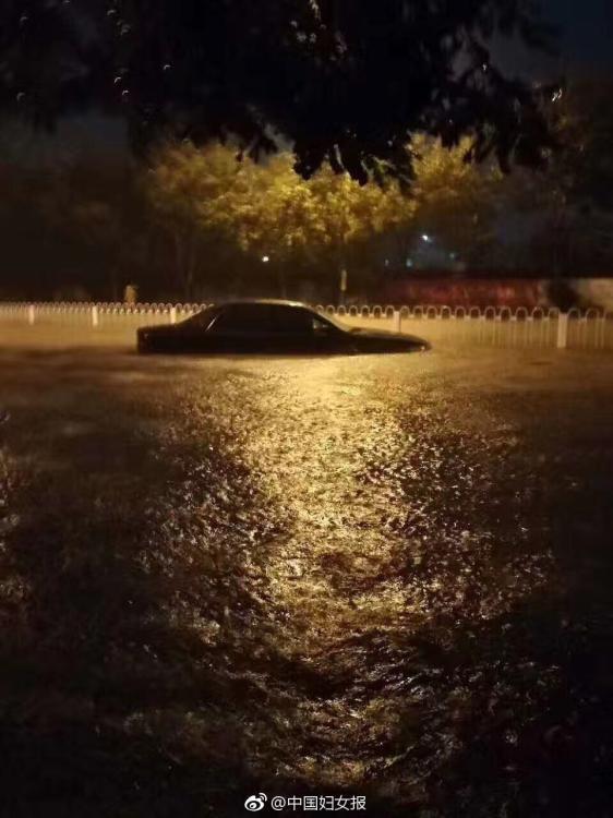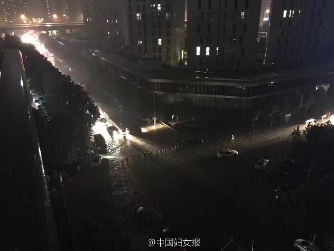 2017年8月2日21时许,北京市房山区长阳镇长泽南街(北京四中房山校区西北角)因暴雨淹没道路,最深的路段已有车辆停在路中间无法挪走。