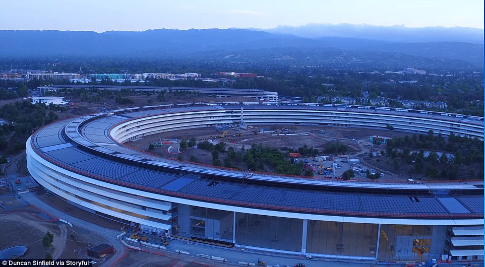 从视频中可以看到,主楼周围安装了280万平方英尺(约26万平方米)的弧形玻璃面板,当太阳落山时,大楼的某些部分被照亮,虽然看起来已经接近完整,但有些地方看起来仍处于施工阶段,一些空闲区域也还需要植被覆盖。连线网站在本月初报道,Apple Park中将建造一些假山和一座迷你森林,种植约9000种抗旱乡土树种。乔布斯很重视自然界与建筑本身的和谐,邀请了树木专家David Muffly来确保植物群的完美分布。