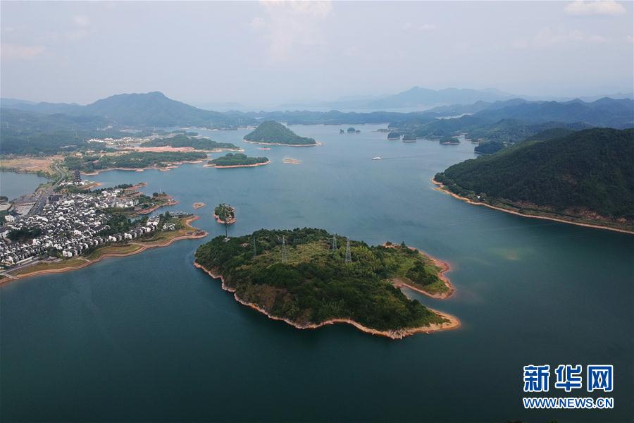 这是8月7日航拍的千岛湖景色。立秋以来,位于浙江省淳安县的千岛湖景色优美。淳安县近年来以“绿色发展”为指引,不断推进生态保护,让“绿水青山”成为当地发展的新名片。新华社记者张铖 摄