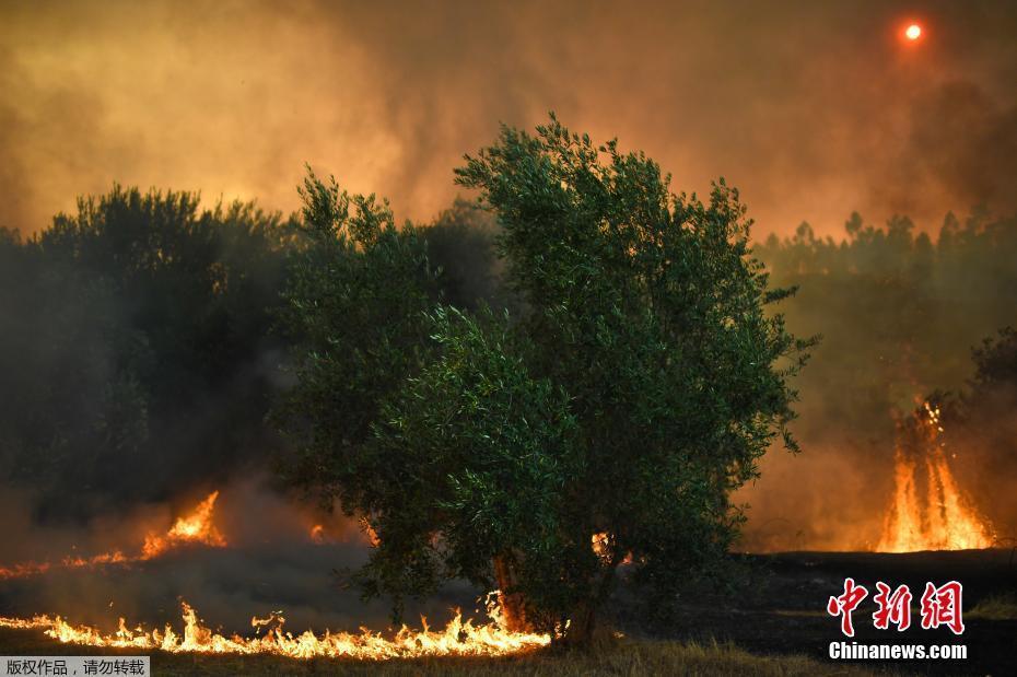 当地时间8月10日,葡萄牙山火逼近阿布兰特什的Pucarica村,该区域消防人员全力灭火。据葡萄牙民防官员称,近期葡萄牙山火,近3000名消防队员奋战在大约80处起火地点。此次山火共出动消防飞机650架次,逾200辆消防车投入到阿布兰特什森林灭火工作中。