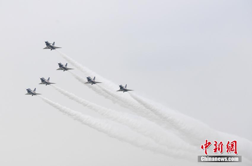 8月10日,在吉林长春,中国空军八一飞行表演队进行精彩的飞行特技表演。当日,“国际军事比赛—2017”“航空飞镖”项目闭幕式暨空军航空开放活动在长春举行。张瑶 摄