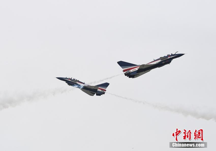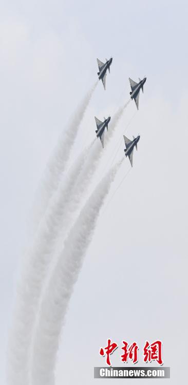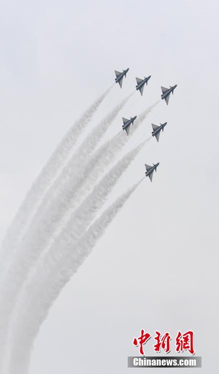 中国空军八一飞行表演队进行特技表演。 张瑶 摄