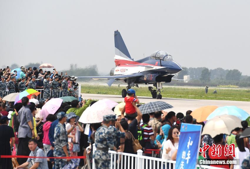 中国空军八一飞行表演队表演后飞行员向观众挥手示意。 张瑶摄