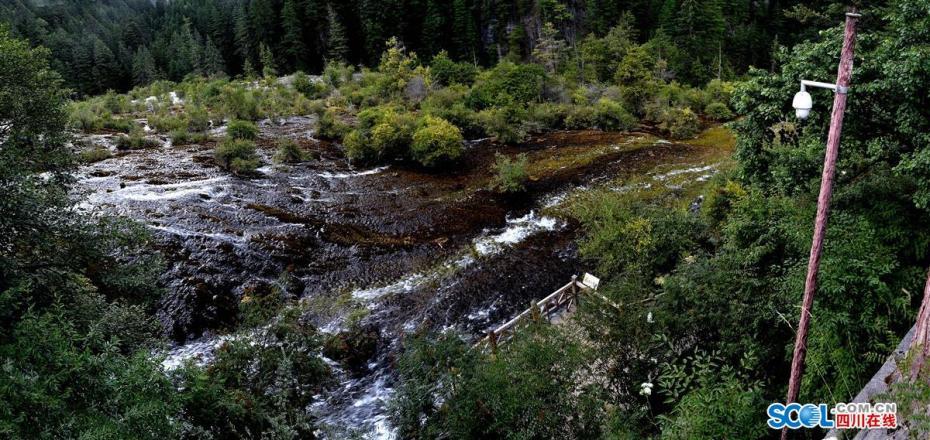 8月10日,西部战区空军再次出动运-9飞机,飞赴九寨沟地震灾区,重点对九寨沟各沟重要景点和区域进行精准航空侦察。在6000米高空俯瞰,被不少游客称为“恋人”的九寨沟依然美丽,看,连绵的青山秀丽依旧,散落的海子清亮的眸子,依然幽蓝清澈,神奇的九寨,依然是看得到的天堂。珍珠滩。四川在线记者华小峰摄 图片来源:四川在线