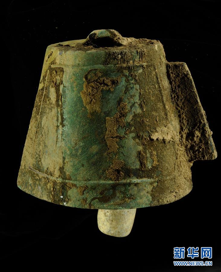 在河南偃师二里头遗址发现的铜铃(2011年8月30日摄)。新华社发