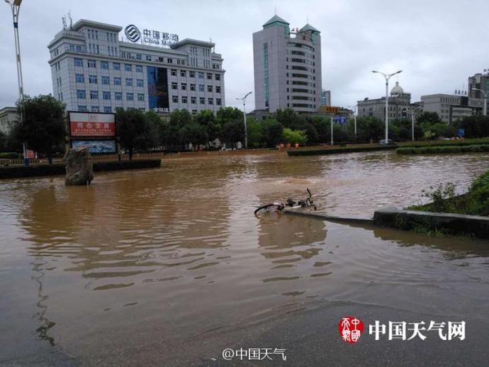 暴雨致湖北咸宁内涝 体育中心变“露天泳池”