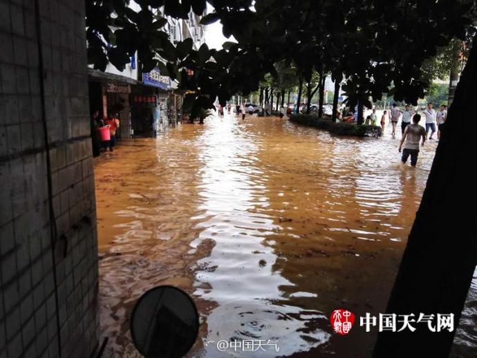 暴雨致湖北咸宁内涝 体育中心变“露天泳池”