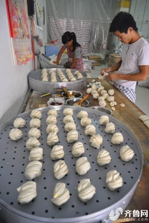 他们每天从早晨的4点起床一直忙到晚上9点以后,虽然辛苦但是也很快乐,两个小夫妻累并快乐着。每天大约蒸面粉16袋左右。蒸馒头大约5000多个,馒头的价格每个在0.4元到1.0元不等,制作的馒头有高桩馒头、圆馒头、花卷、发糕、玉米锅贴、巧克力馒头、黑米馒头等多个品种。齐鲁网发 赵玉国摄 图片来源:齐鲁网