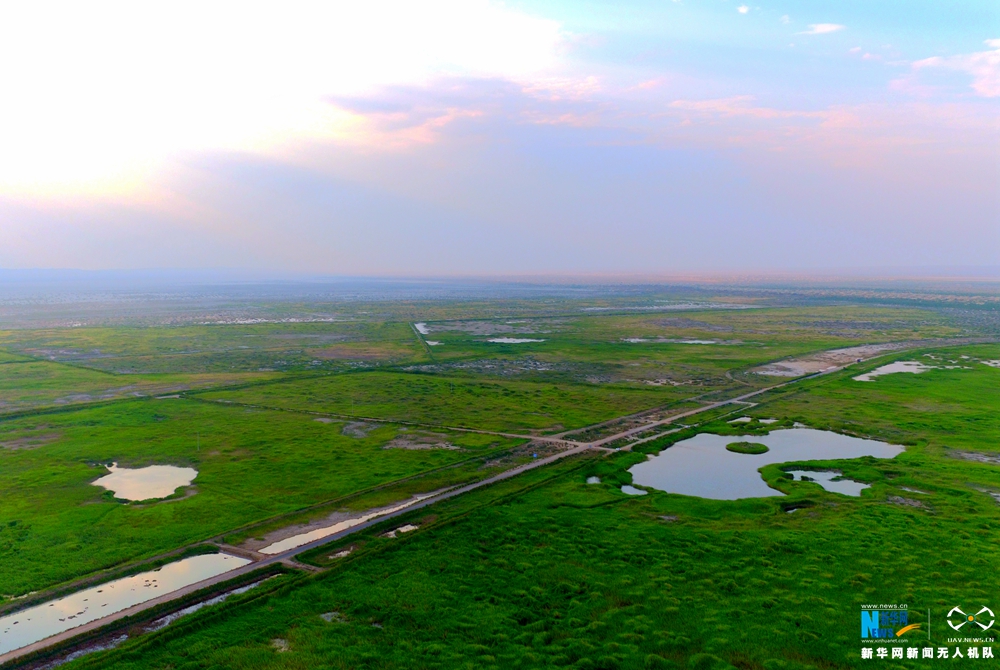 航拍“复活”的青土湖 阻隔两大沙漠合拢