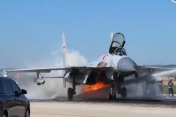 歼15起飞1分钟撞鸟群引擎起火 飞行员沉着应对成功降落