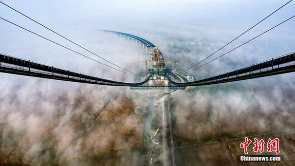 洞庭湖大桥A2标由中交路桥建设有限公司(简称中交路建)承建。三年来,中交路建项目团队以精湛的技艺和敬业的态度,全力打造这座集“高、精、尖、新、险、难”于一体的世界级桥梁。图为2016年12月22日,云雾中的洞庭湖大桥。