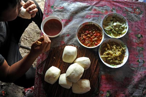 稀饭是妈妈早上就用炉灶烧好的。这几天摘西红柿忙,中午他们一般不再做饭,谁饿了就喝稀饭、吃馒头。
