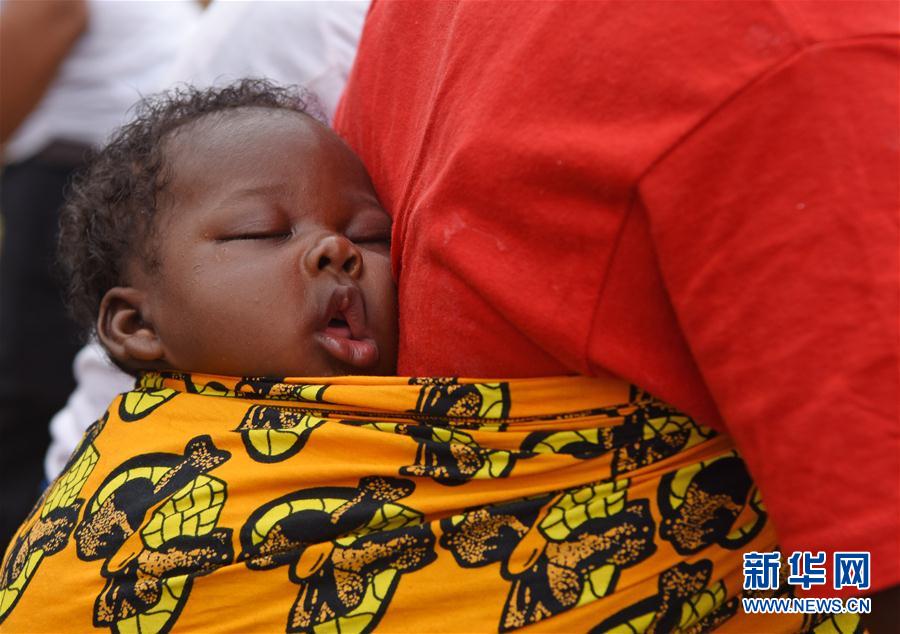 8月19日,在塞拉利昂首都弗里敦一个安置点,一名儿童在母亲的背上酣睡。