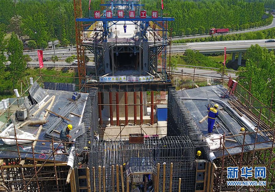 工作人员在郑万高铁河南平顶山段一处施工现场作业(4月29日摄)。新华社记者李安摄