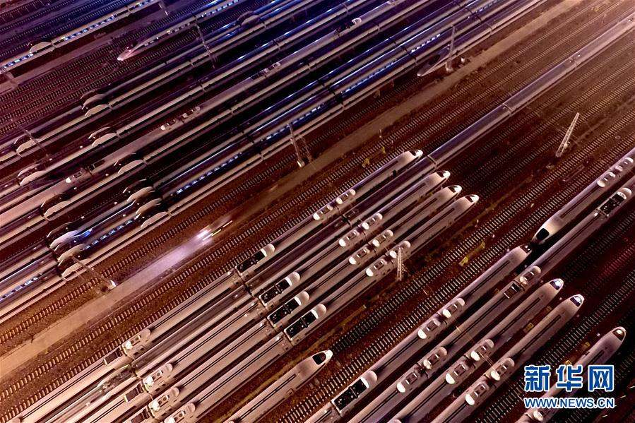 动车组列车停靠在郑州动车段停车场,等候进库检修(2016年9月6日摄)。新华社记者李安摄
