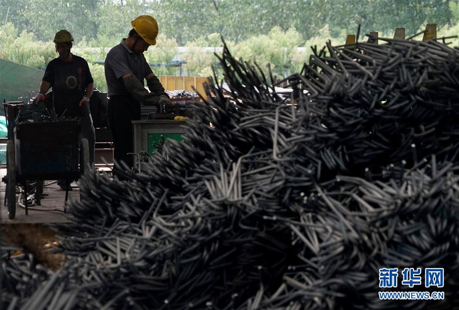 施工人员在郑万高铁一处制梁场内作业(8月15日摄)。新华社记者李安摄