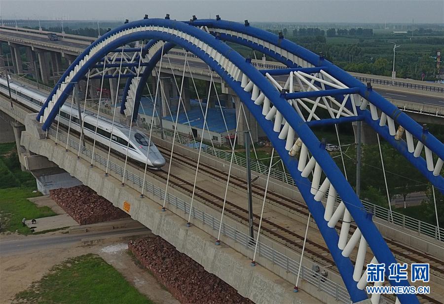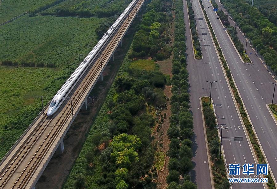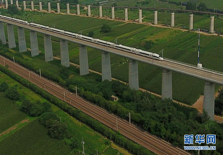 一列动车组列车行驶在徐兰高铁洛阳段(8月16日摄)。新华社记者李安摄