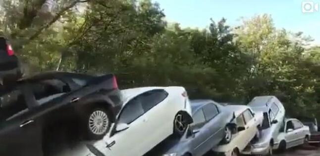 8月18日,乌克兰旅游城市苏达克受暴雨侵袭而引发泥石倾泻,泥石倾泻威力强大,令一条高速公路上约50辆汽车被冲至“车叠车”,有目击者把当时情况上传网络。现场交通受阻,形成长达10公里车龙。