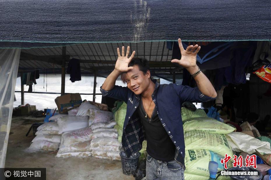 “我每天能赚70块人民币,在我们缅甸掸邦已是高工资了,我们很满足啦。” 2017年8月12日,云南省勐海县勐龙镇一处简易工棚边,20岁缅甸掸邦小伙罗星海(音)操着生硬中文、不停比划着手势想表达得更清楚。