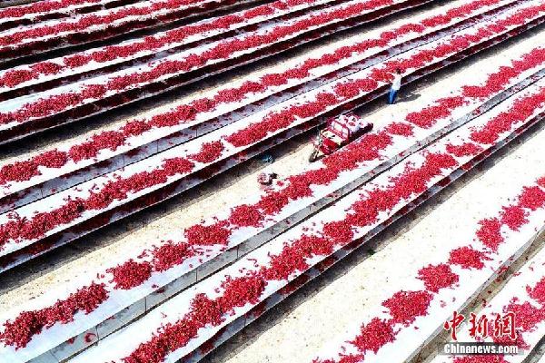 壮观!新疆农民晾晒13万亩红辣椒:将销往海外
