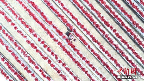 眼下,新疆生产建设兵团第二师按照“合作社+基地+农户”扶贫发展模式,种植的13万亩无公害扶贫红辣椒喜获丰收,因其独特的地理气候条件,所产辣椒个大、无公害、色泽好,产量高、红色素和辣椒碱含量位居新疆前列。杜炳勋闫志江摄