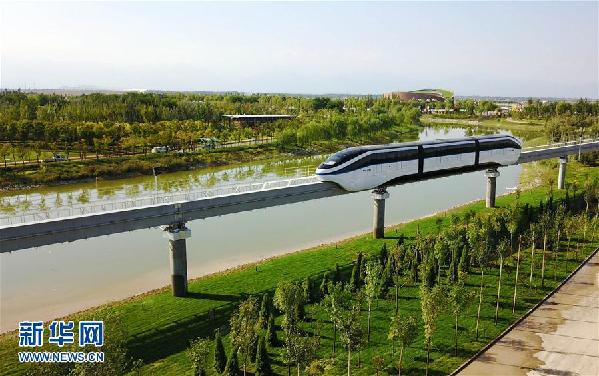 8月31日,“云轨”列车行驶在银川花博园园区。当日,作为第九届中国花卉博览会重点项目的比亚迪“云轨”花博园旅游专线在宁夏银川花博园正式通车。据了解,“云轨”银川花博园段由单根轨道组成环线,总长5.67公里。花博会期间,游客可乘坐“云轨”欣赏花博会美景。新华社记者王鹏 摄