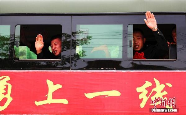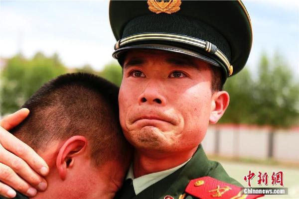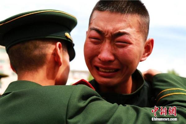 老兵们要离开朝夕相处的战友,哭红了双眼。裴海博摄