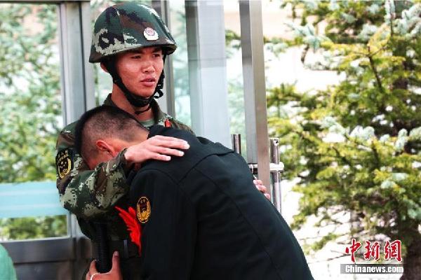 即将分离的时刻,老兵不舍与战友离别。张小军摄