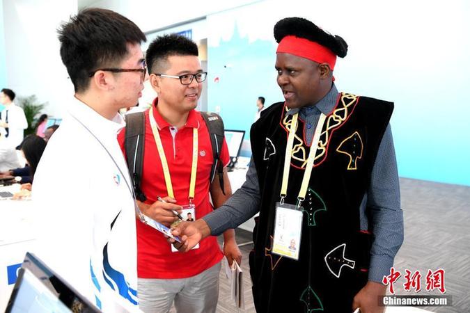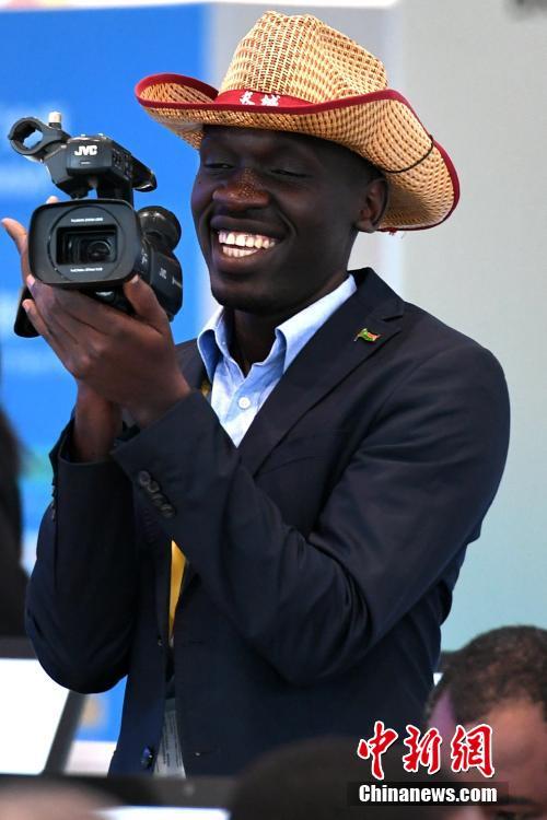 9月3日,喀麦隆记者盛装亮相新闻中心。据悉,共有80个国家和地区的3000名中外记者报名采访本次金砖国家领导人厦门会晤。中新社记者 王东明 摄