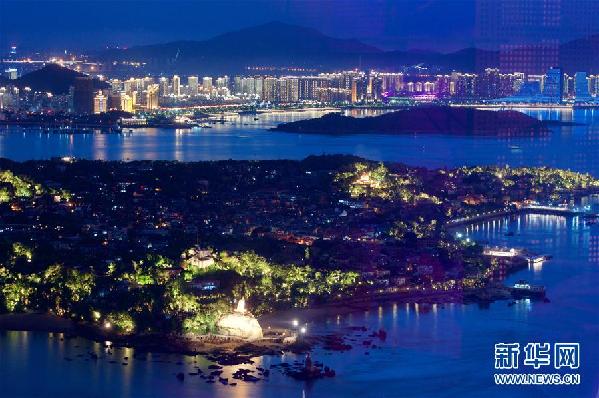 鼓浪屿与厦门岛的灯火在夜色中交相辉映(9月4日摄)。