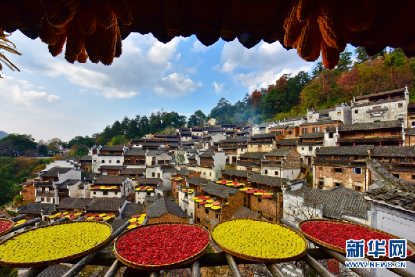 婺源篁岭是著名的“晒秋”文化起源地。数百栋徽派古民居在百米落差的坡面错落有序,每当日出山头,晨曦映照,整个山间村落饱经沧桑的徽式民居土砖外墙与晒架上,圆圆晒匾里五彩缤纷的丰收果实组合,绘就出世界独一无二的“晒秋”景观,成为最美中国符号。篁岭景区董事长吴向阳介绍,婺源篁岭景区自创立之初,就以打造中国最具民俗特色的影视艺术村落为目标,目前在此拍摄取景的影视作品已达十多部。